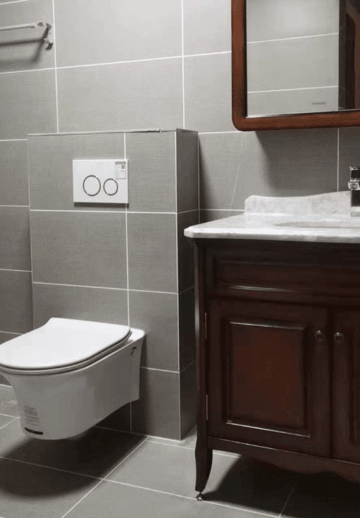 The wall-mounted hidden water tank has a high and low level, which can be selected according to the design style of your own bathroom. The main body is divided into a floor-mounted split type and a hanging type. If the bathroom cabinet is designed to be integrated with the hanging toilet, then the water tank cannot choose a high water tank, because the height of the bathroom cabinet from the ground will not exceed 85CM