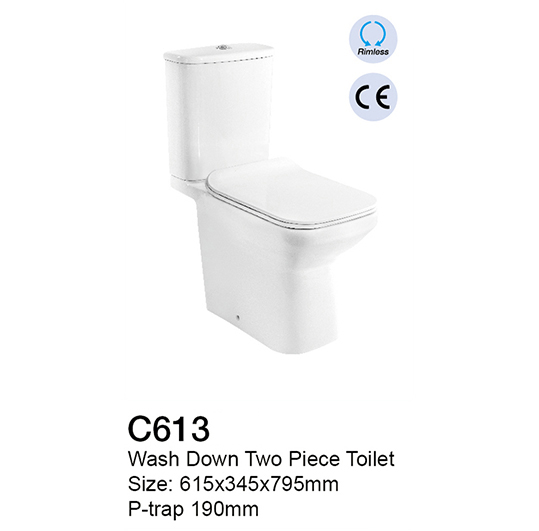 | Flush System: | Washdown, RIMLESS | Water Outlet: | P-trap 190mm roughing-in |