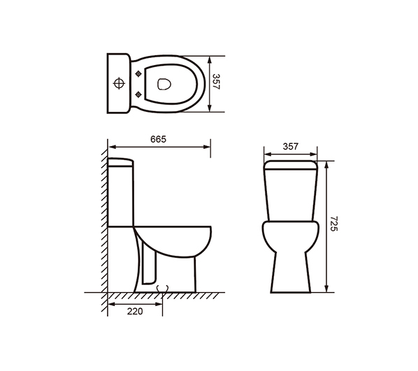 | Product Name: | Washdown Two piece toilet | Material: | Vitreous China | ||