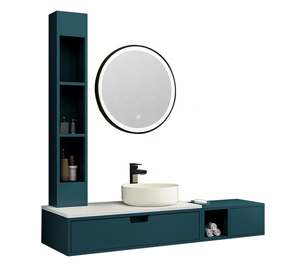 The design of the side cabinets greatly enhances the storage function of the bathroom.