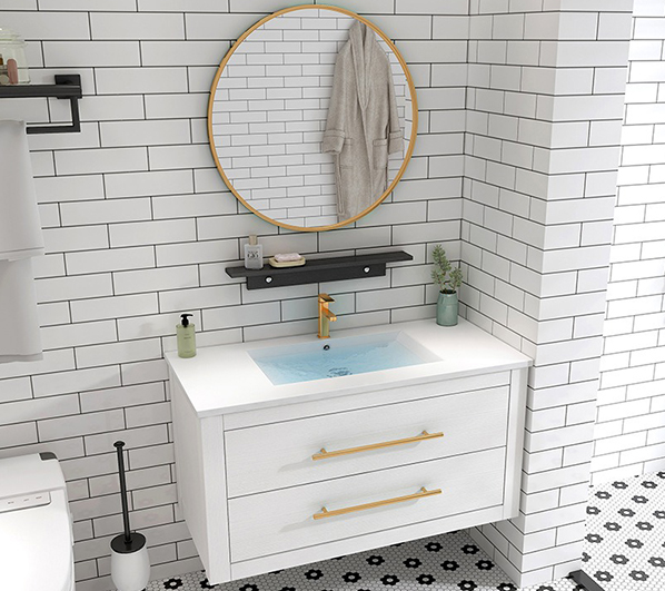 There are 2 drawers on the cabinet for keeping your personal belongings hidden from others. When you close the drawers, you are keeping those items away from dust and water splashes.